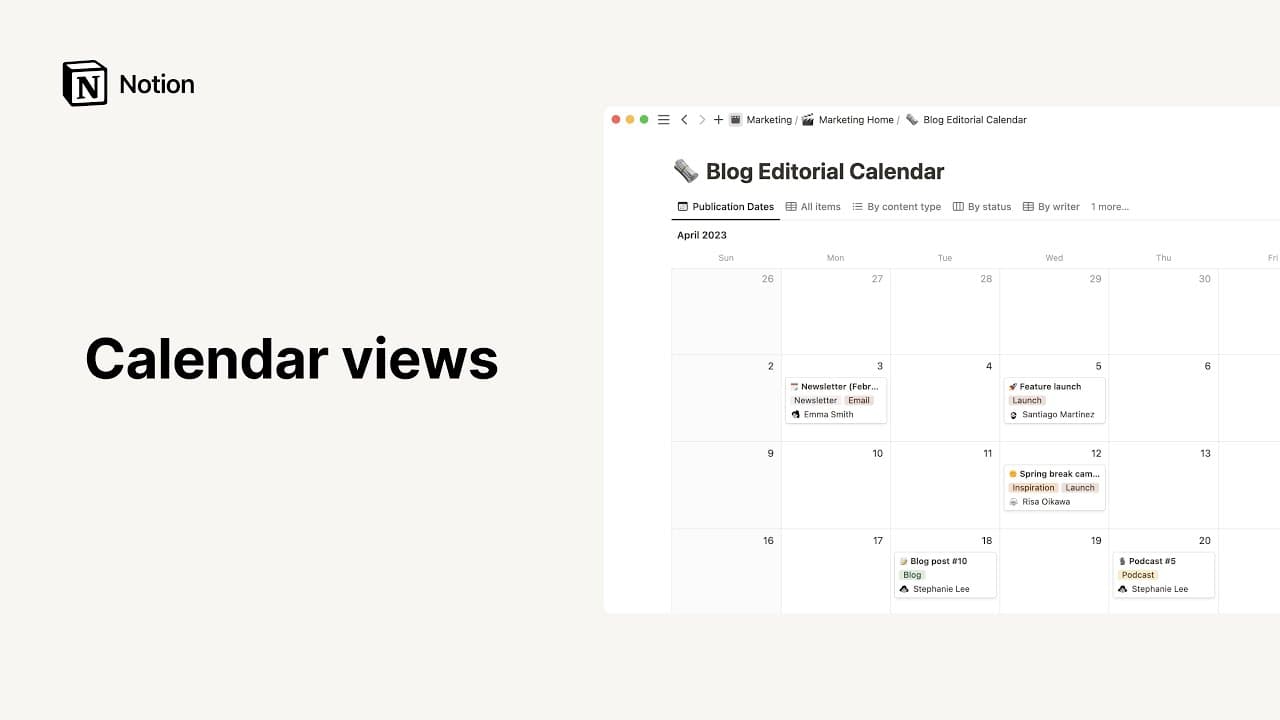 Möchtest du die Ereignisse deiner Datenbank zusammen mit deinen übrigen Terminen, Besprechungen und Plänen sehen? Du kannst deine Notion-Datenbank zum Notion Calendar hinzufügen. So sind alle wichtigen Daten an einem Ort. Du kannst deine Datenbankdaten sogar direkt in Notion Calendar aktualisieren. Mehr dazu hier →