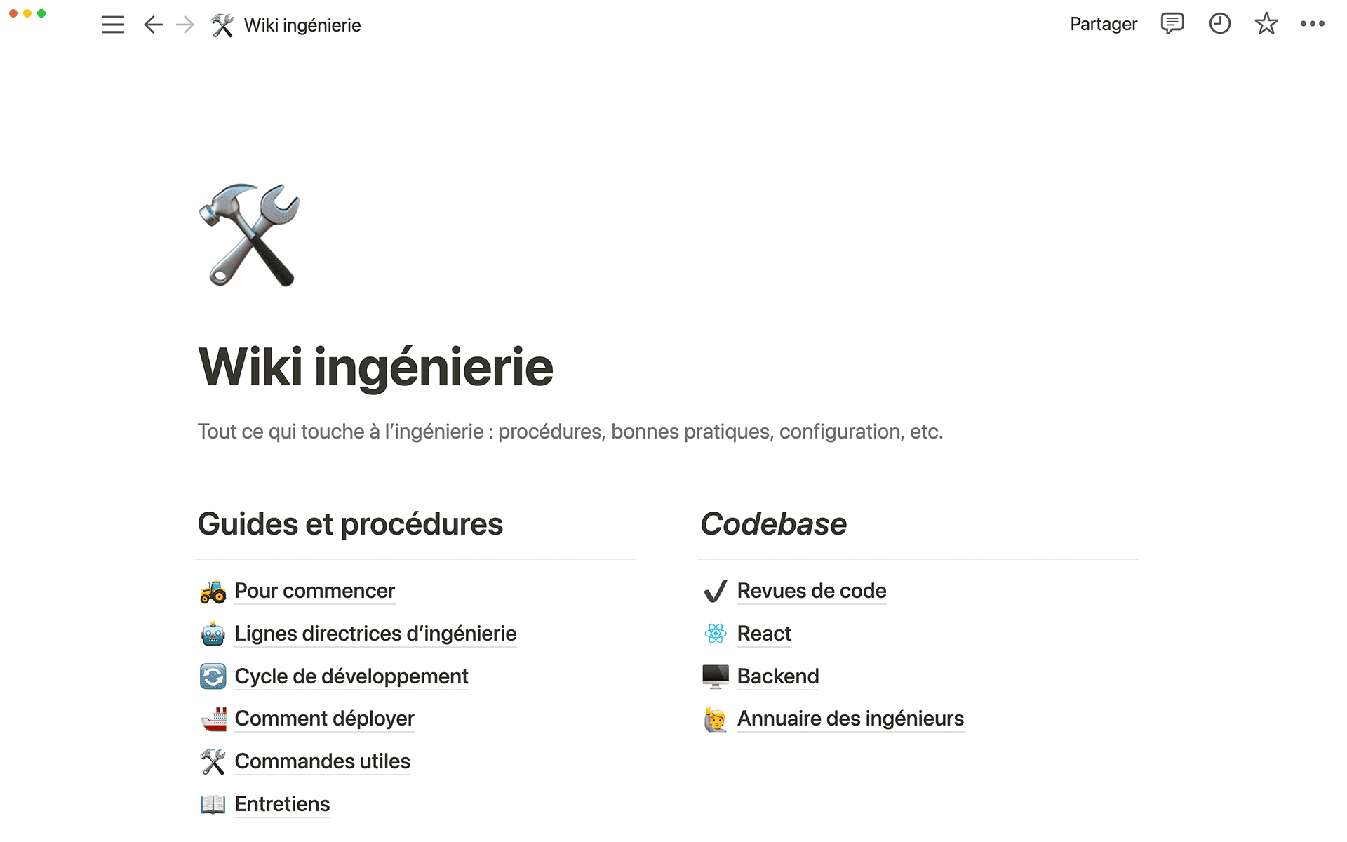 Notion est le seul outil qui permet de rédiger de la documentation sans effort. Qu’il s’agisse de bonnes pratiques de code, d’instructions de dépannage ou de rotations de triage, tous les processus importants sont faciles à trouver, et faciles à exploiter au quotidien.